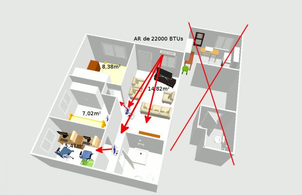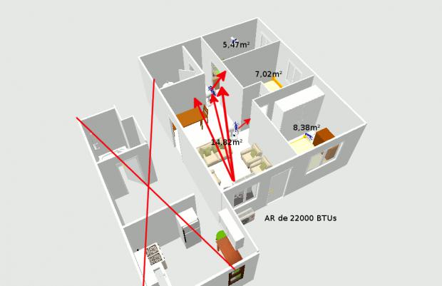 Vejam anexo as imagens que fiz com o software Sweet Home 3D, não está um primor mas tem uma boa noção do que eu tenho em casa e de como pretendo fazer esta "climatização inicial".