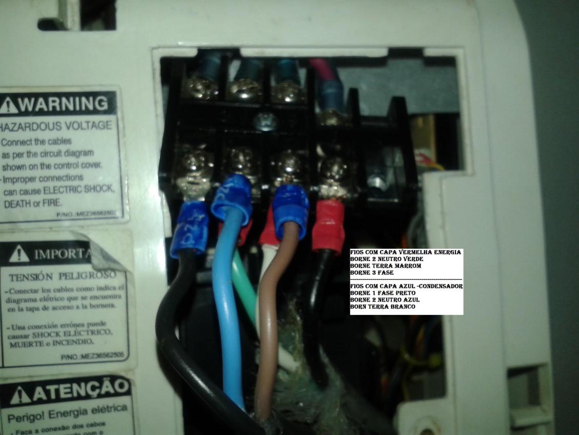 fiz a ligação dos cabos conforme suas instruções , mas não funcionou .para tirar a duvida para saber se a evaporadora estava funcionando ou não tirei o fio fase do borne 3 e liguei no borne 1(L) e funcionou perfeitamente (a evaporadora) . liguei também a condensadora junto com a mesma sequencia da energia , mas ela ficou funcionando direto .
