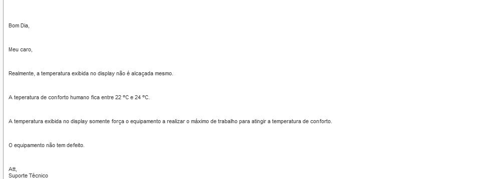 Observei que a refrigeração no quarto ficou fraca, o ar fica frio, mais o ambiante não chega a ficar super gelado.