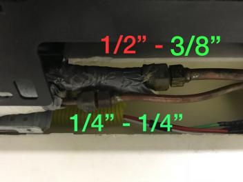 Vale notar que só agora me atentei que a tubulação do prédio é 1/4" e 1/2", mas meu equipamento é 1/4" e 3/8". Foi feita uma redução nas duas pontas da linha de sucção, para reduzir de 1/2" pra 3/8". Qual o problema disso? Devo acrescentar mais gás que o recomendado no manual?
